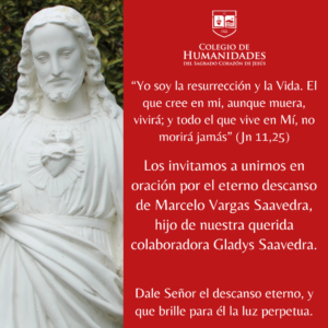 Como comunidad educativa y familia Humanidades expresamos nuestras más sinceras condolencias y oramos por el eterno descanso de Marcelo Vargas Saavedra, hijo de nuestra querida colaboradora, Gladys Saavedra, así como por la fortaleza de toda su familia. La certeza de
