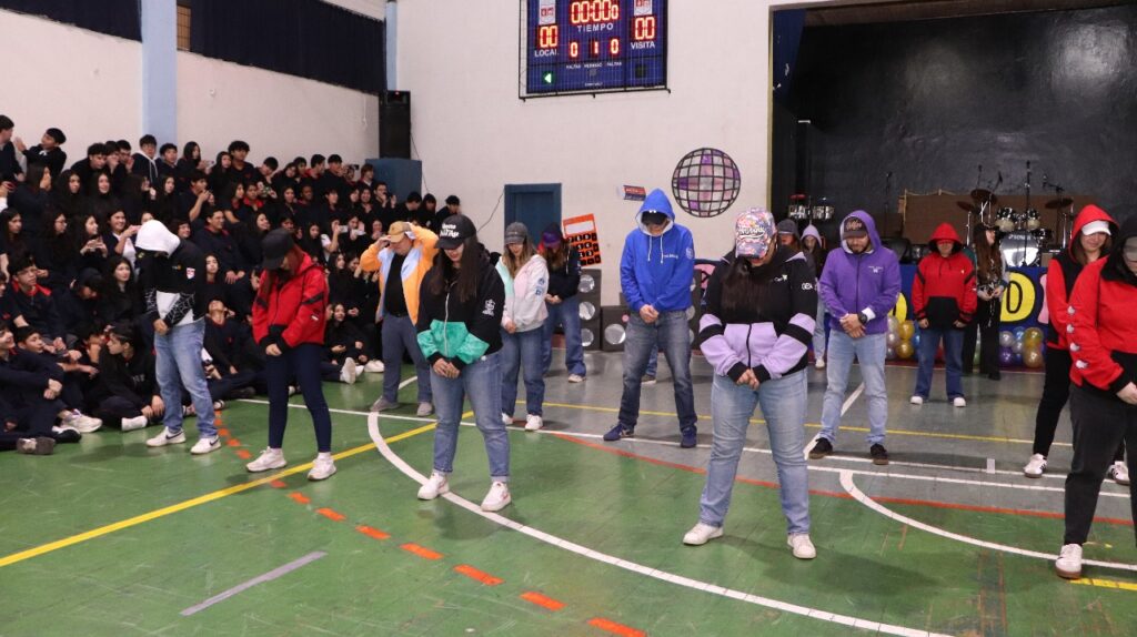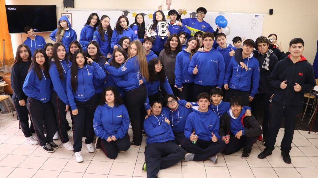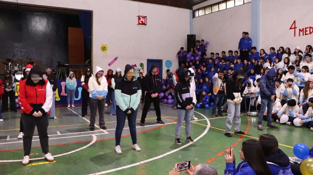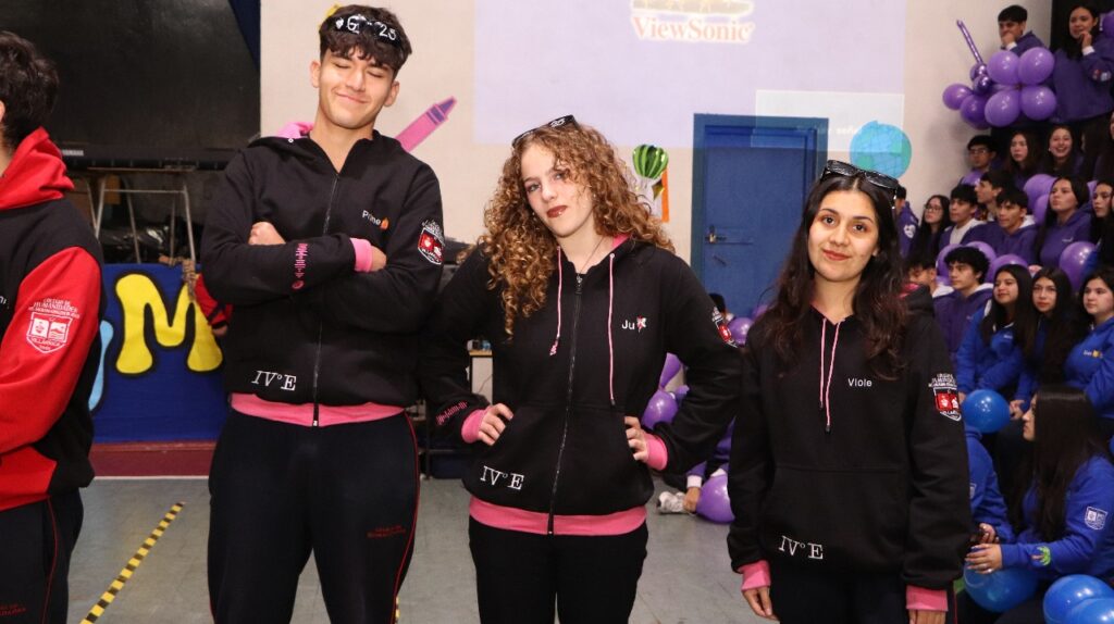 Se vivió un momento especial durante la presentación de los polerones distintivos de los cinco cursos de cuarto medio, quienes con orgullo mostraron el diseño que los acompañará durante este importante año escolar.