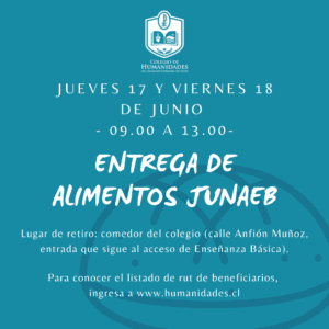 Estimadas familias: El Jueves 17 y Viernes 18 de Junio , desde las 09:00 a las 13:00 hrs, estaremos entregando los alimentos JUNAEB en el comedor del colegio, calle...