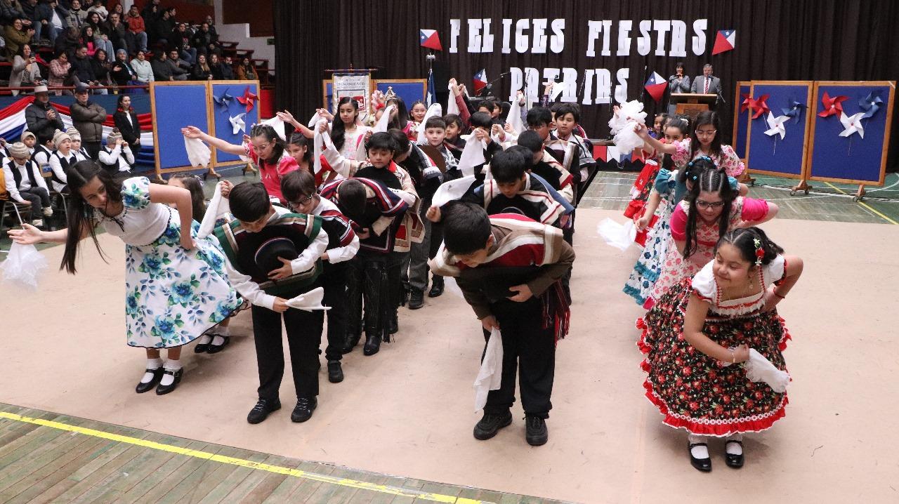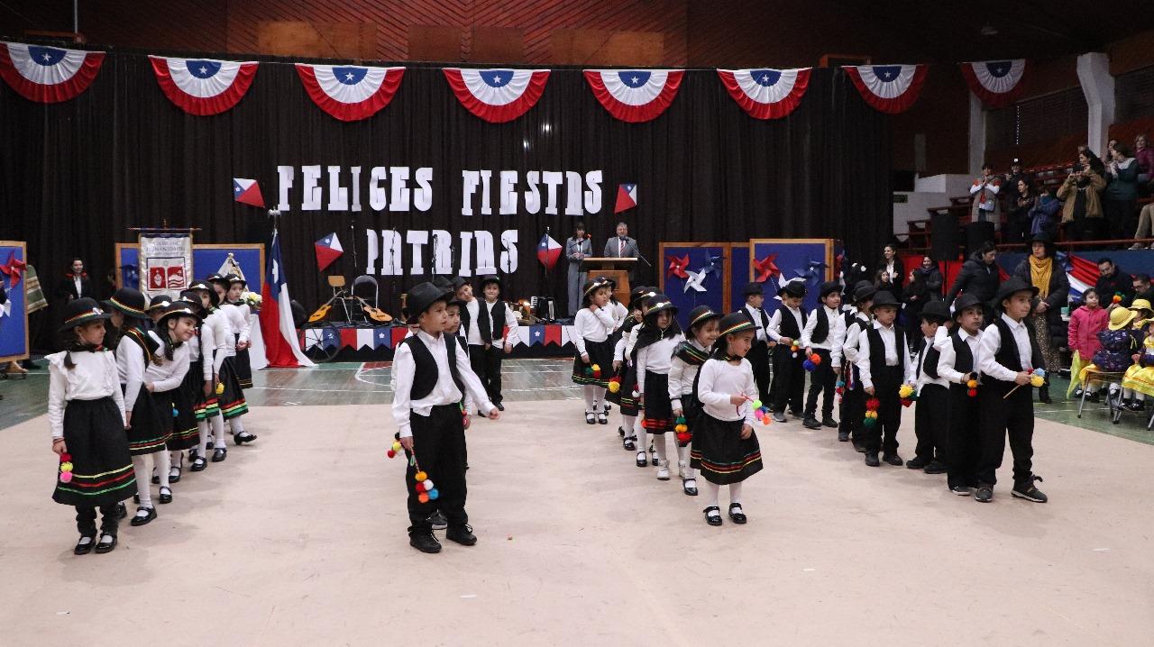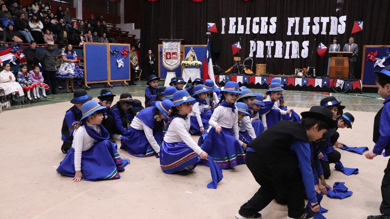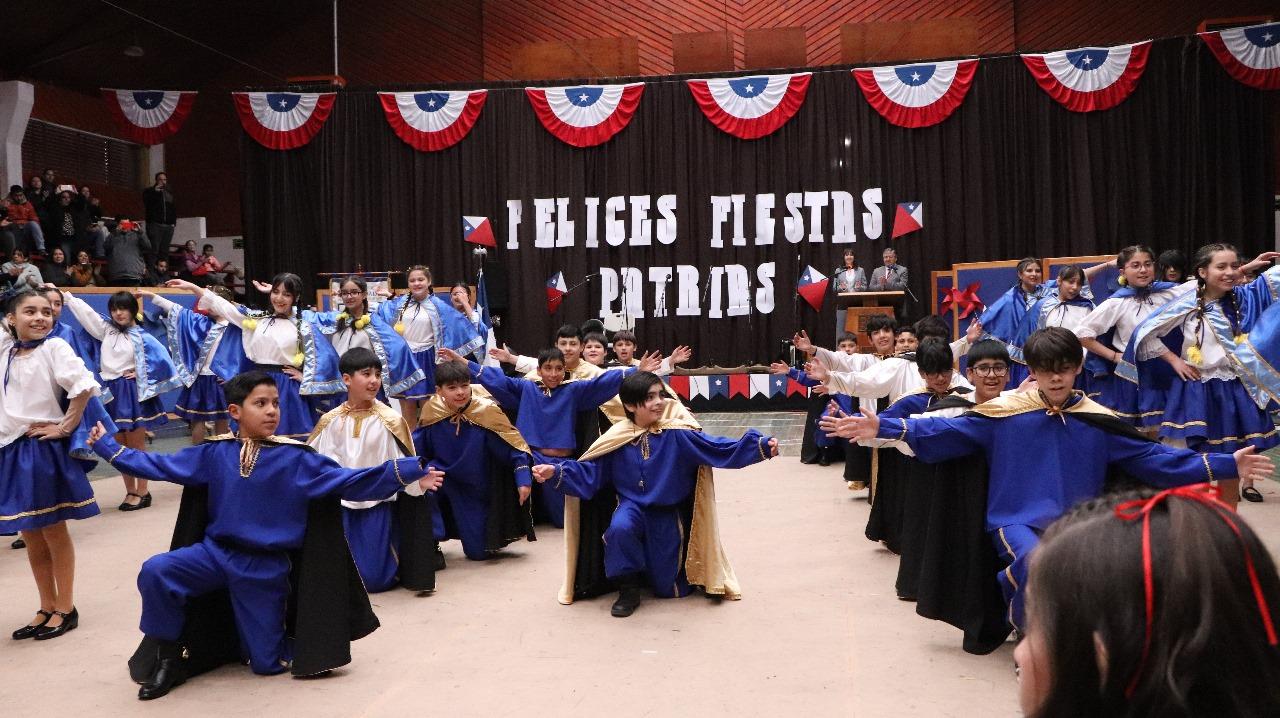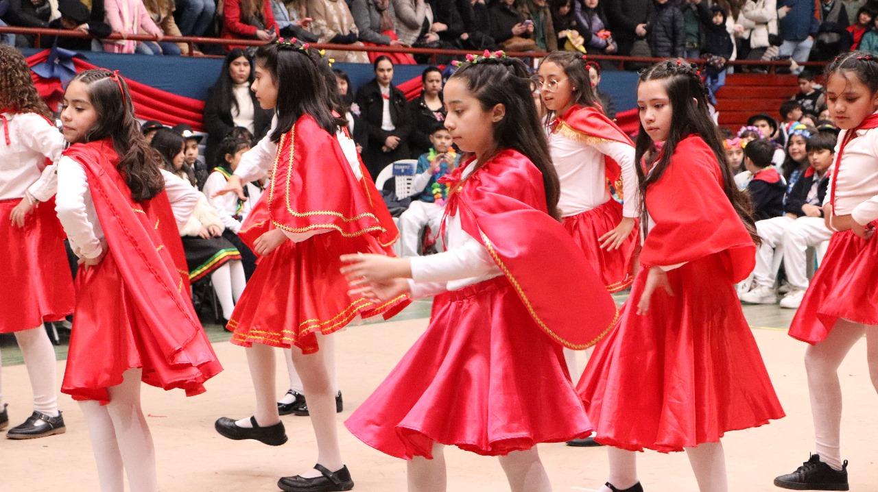 el jueves 5 de septiembre, los estudiantes de nivel inicial a 6° básico sorprendieron con una vibrante presentación de bailes folclóricos. A través de una gran variedad de danzas tradicionales, llenaron de alegría y emoción el escenario, mostrando con orgullo el trabajo realizado en cada curso. Los asistentes disfrutaron de un espectáculo lleno de energía y color, donde los estudiantes demostraron su dedicación y entusiasmo por nuestras raíces culturales.
