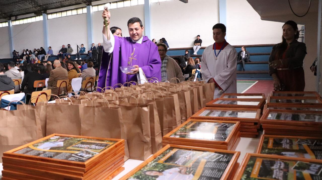 La ceremonia estuvo colmada de emociones mientras se bendecía a estos jóvenes, deseándoles todo el éxito al dar el paso hacia la enseñanza media. Con la bendición de los presentes, se selló este momento de transición, inspirando a los estudiantes a emprender su próximo desafío con determinación y alegría.