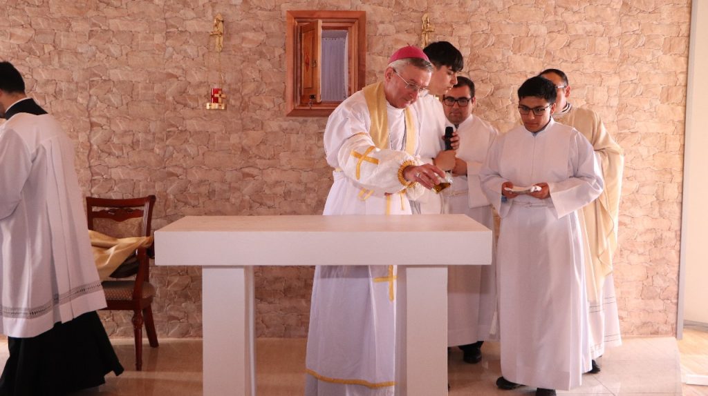 En la capilla recientemente reformada de la sede Segunda Faja se llevó a cabo la Ceremonia de Consagración del Altar, un momento solemne y lleno de significado para nuestra comunidad. La celebración fue presidida por Monseñor Francisco Javier, acompañado por los sacerdotes y capellanes Padre Ramón, Padre Cristian, Padre Santiago y Padre Elías. Los cantos estuvieron dirigidos y acompañados por las Hermanas Mater Dei, quienes dieron especial realce a la ceremonia.