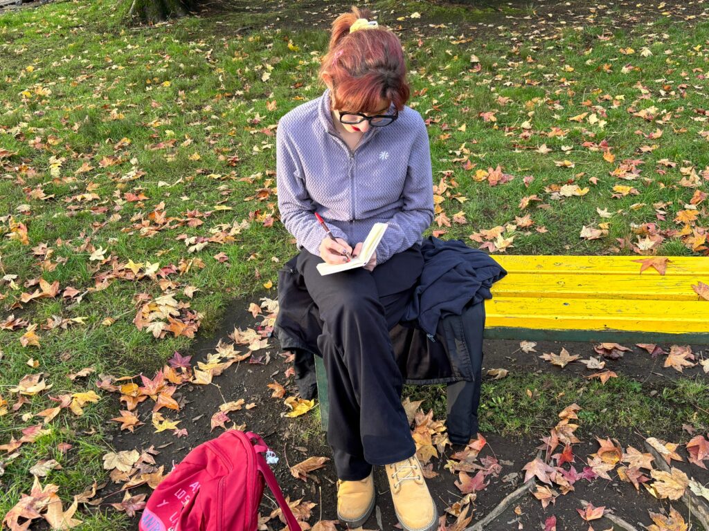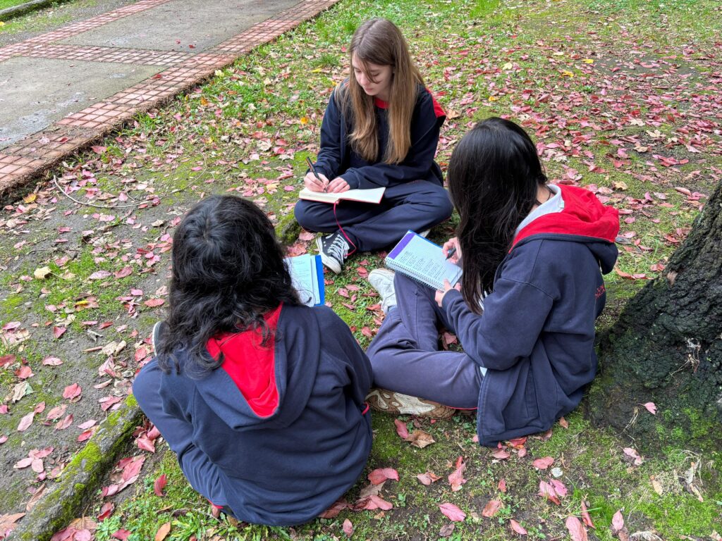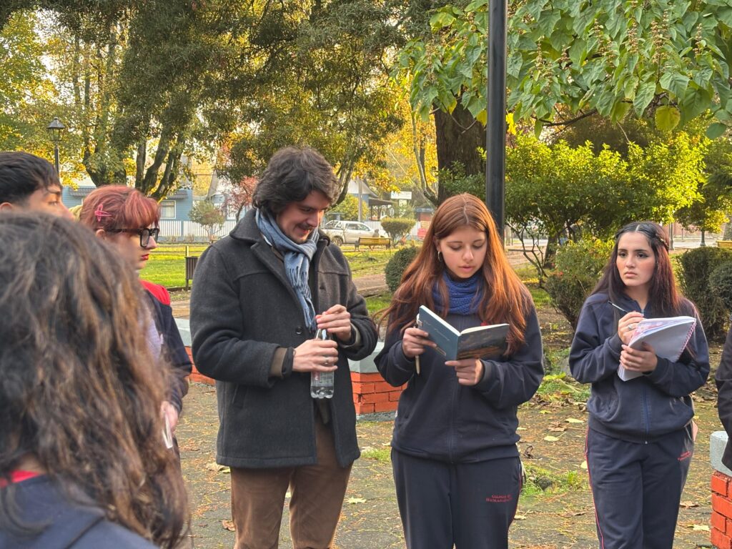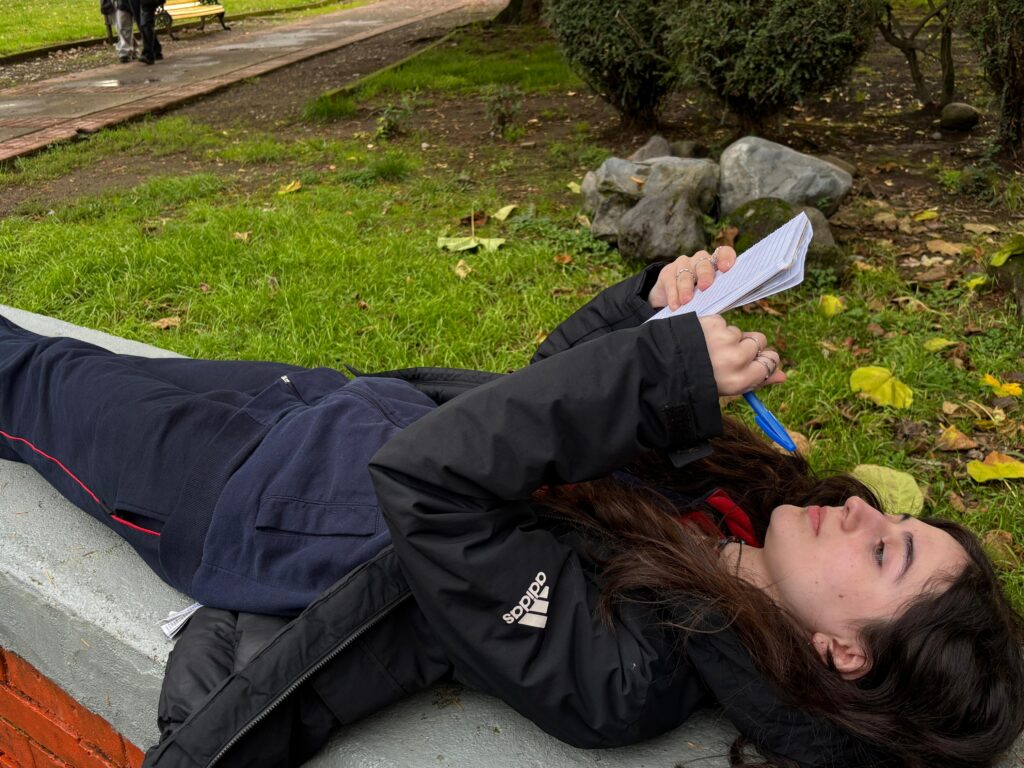 Estimada comunidad CDH: miércoles 6 de mayo, el Taller de Poesía salió a la plaza de armas de Villarrica para escribir poemas inspirados en el otoño. Cada estudiante exploró la naturaleza del sector, con su libreta y lápiz, anotando lo que observaban, sentían e imaginaban.