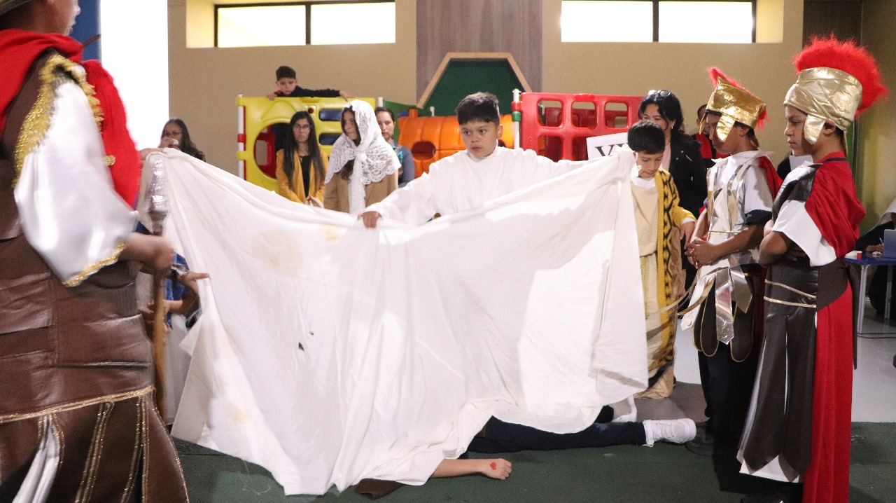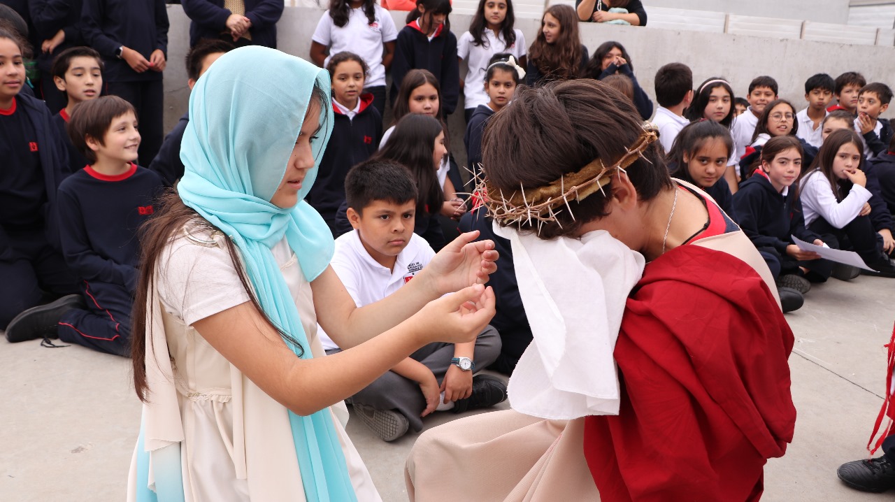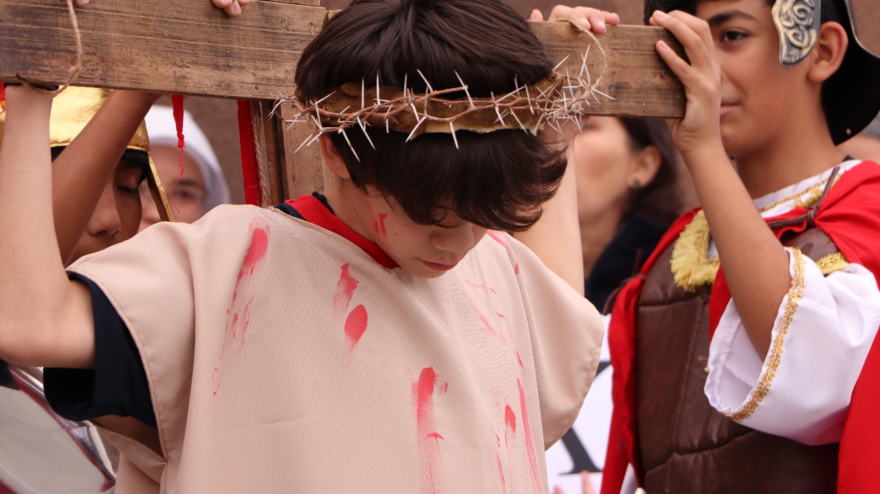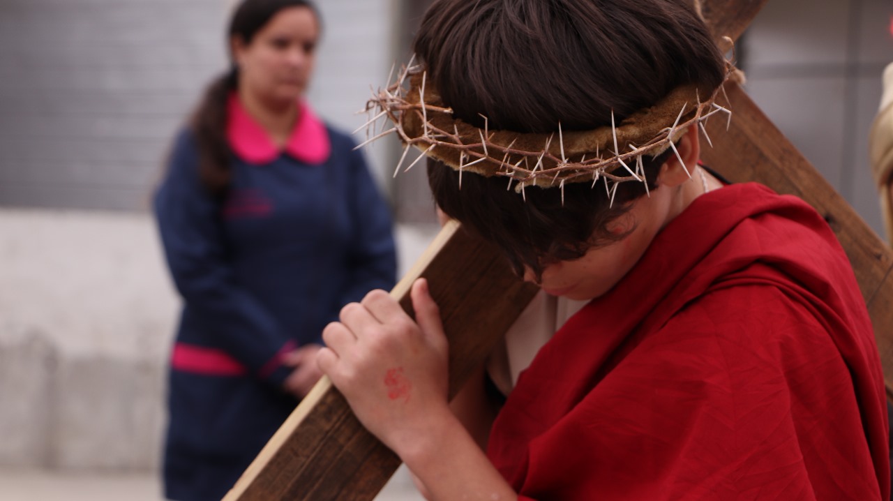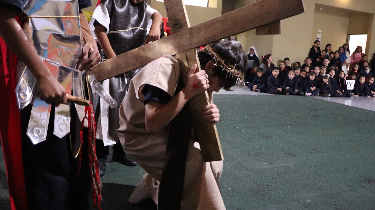 Los alumnos recrearon cada estación, desde la condena de Jesús hasta su crucifixión y muerte en el Gólgota, generando un ambiente de recogimiento en la contemplación ante el Misterio de la Pasión y Muerte de Nuestro Señor, con la esperanza de la Resurrección