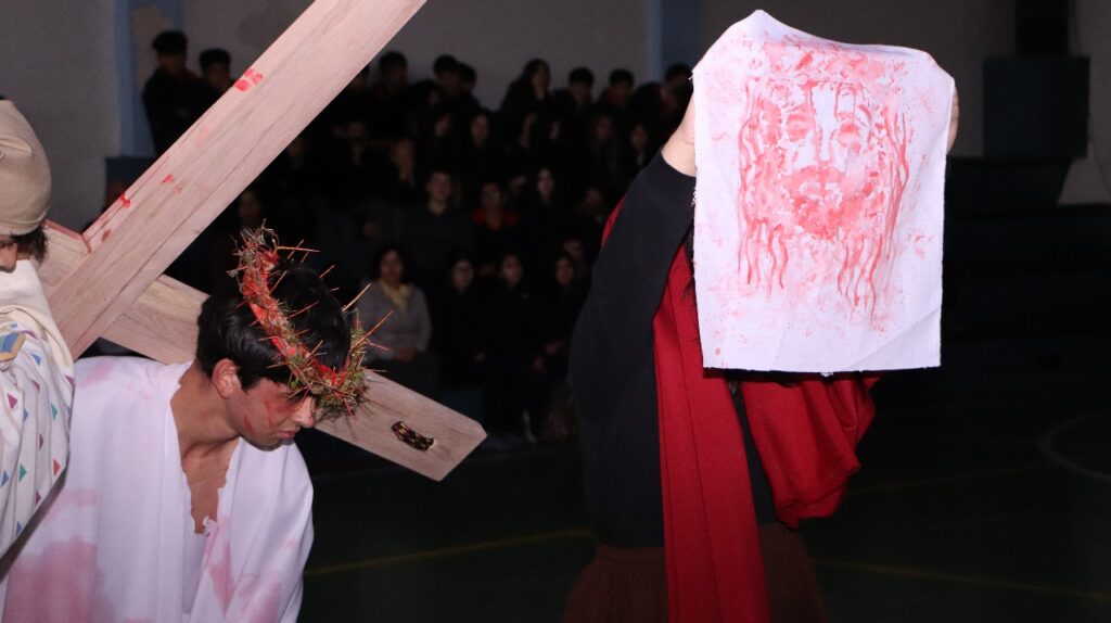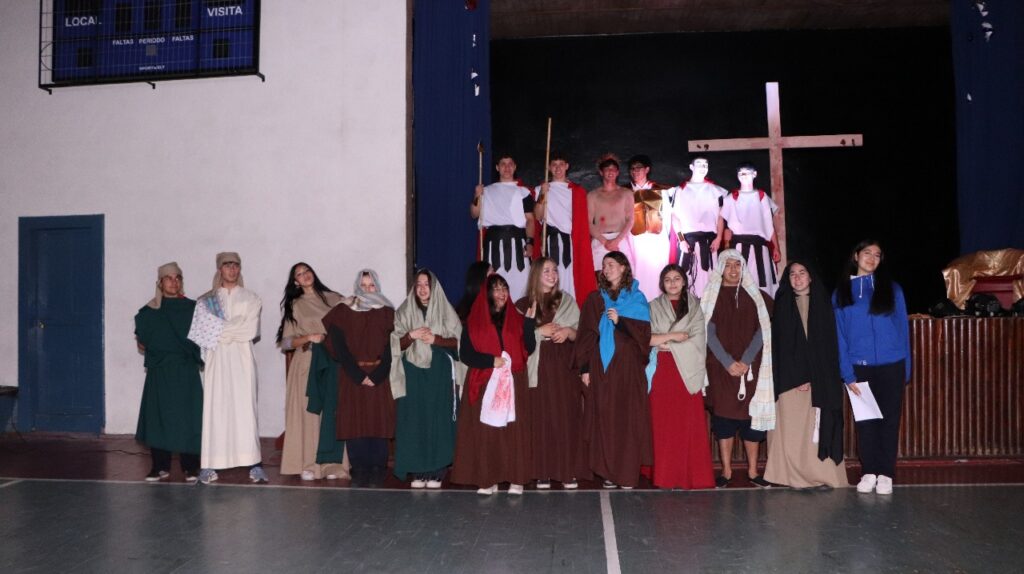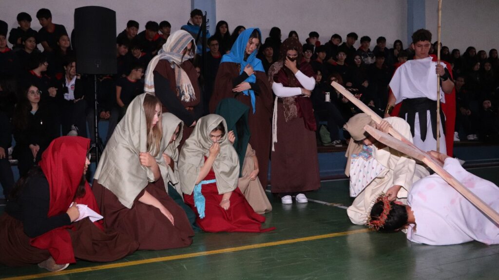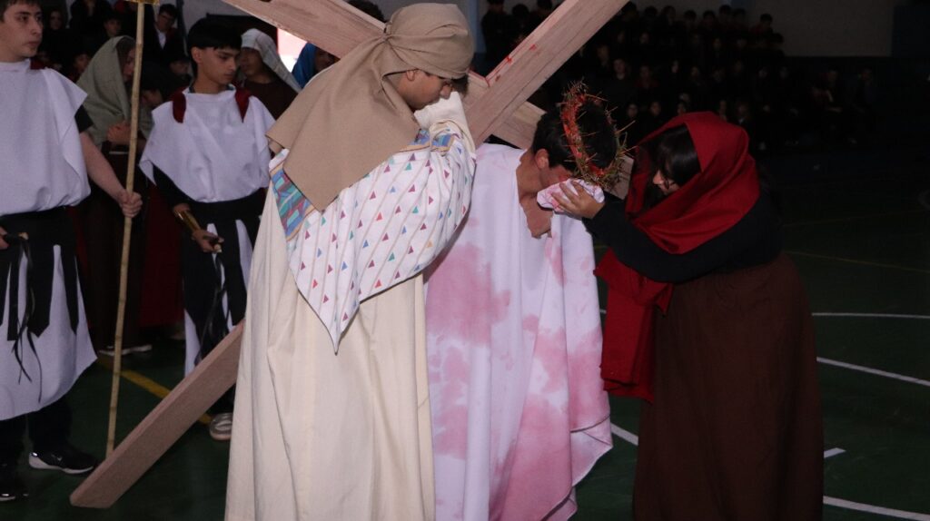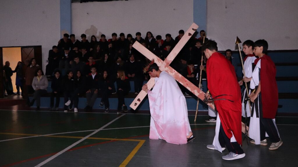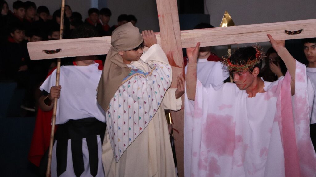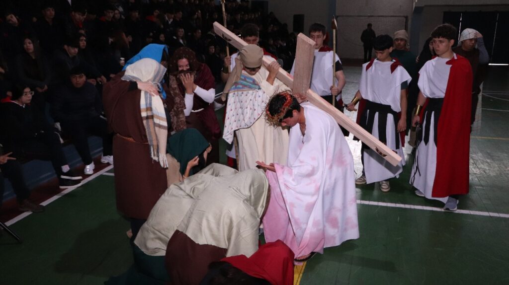 Los alumnos fueron los protagonistas de esta significativa puesta en escena, recreando con respeto y compromiso cada una de las estaciones que narran el camino de Jesús hacia la cruz. A través de sus actuaciones, pudimos contemplar el calvario de Cristo y reflexionar sobre su entrega y amor incondicional por la humanidad.