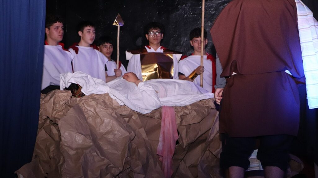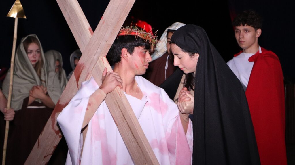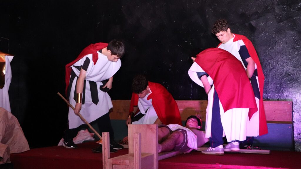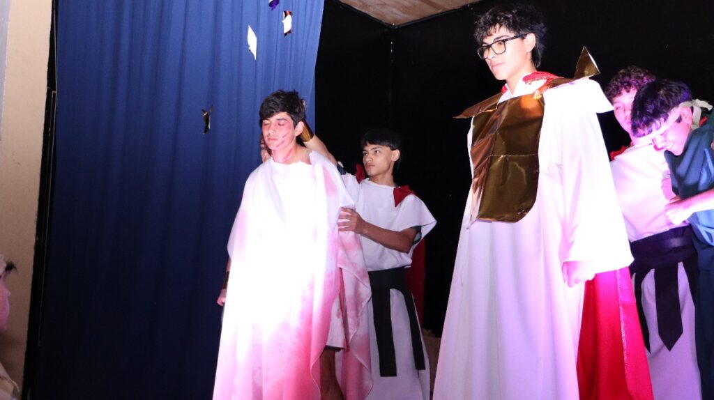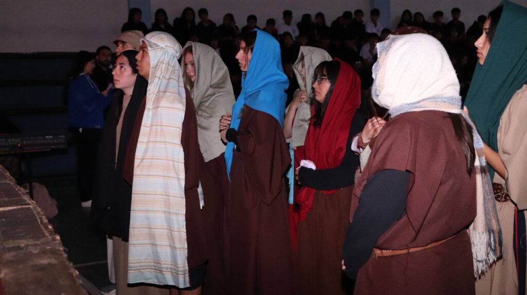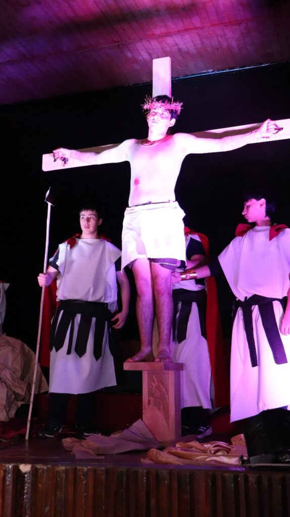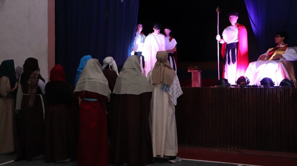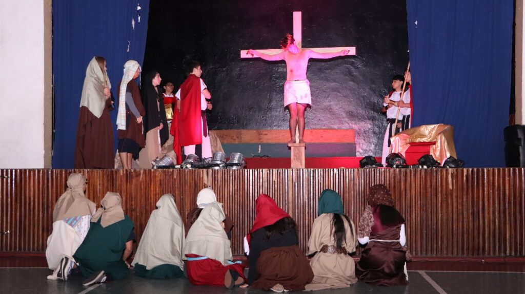 Los alumnos fueron los protagonistas de esta significativa puesta en escena, recreando con respeto y compromiso cada una de las estaciones que narran el camino de Jesús hacia la cruz. A través de sus actuaciones, pudimos contemplar el calvario de Cristo y reflexionar sobre su entrega y amor incondicional por la humanidad.